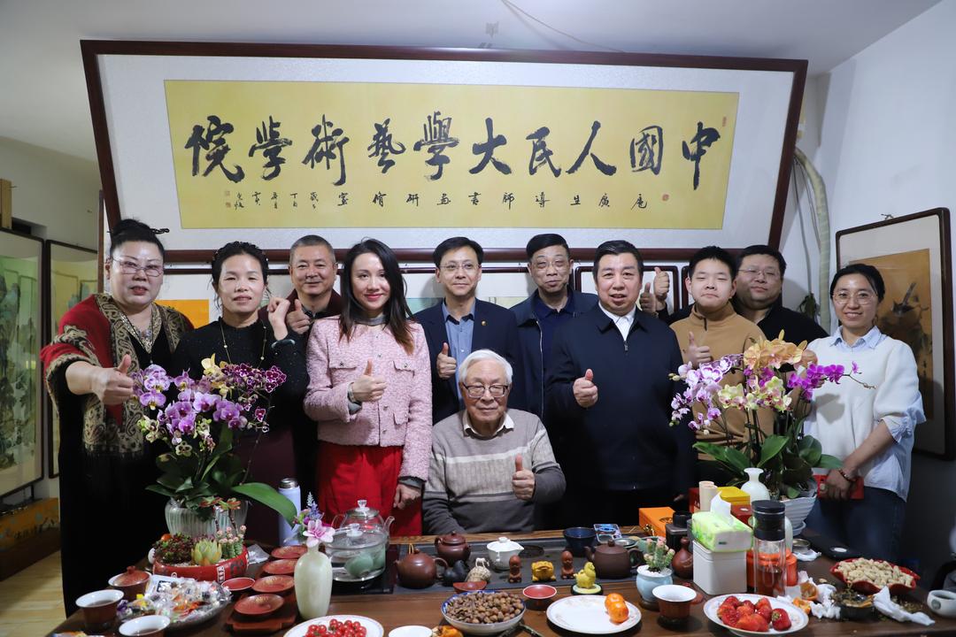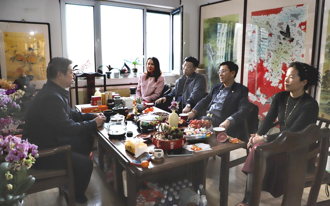 新春佳节之际,全国工商联民间文物艺术品商会常务理事、业态建设专业委员会常务副会长兼专家评审组主任盛昶砚,业态建设专业委员会副秘书长、著名歌手及大型节目主持人顾思思,国升文物鉴定总经理邓振刚等一行,专程到访全国工商联民间文物艺术品商会业态建设专业委员会委员、肌理画派创始人户广生工作室,开展艺术交流活动,共话书画艺术传承与发展。会后一同为单国强老师庆祝生日!祝福单国强老师身体健康!马年吉祥!福寿绵长!