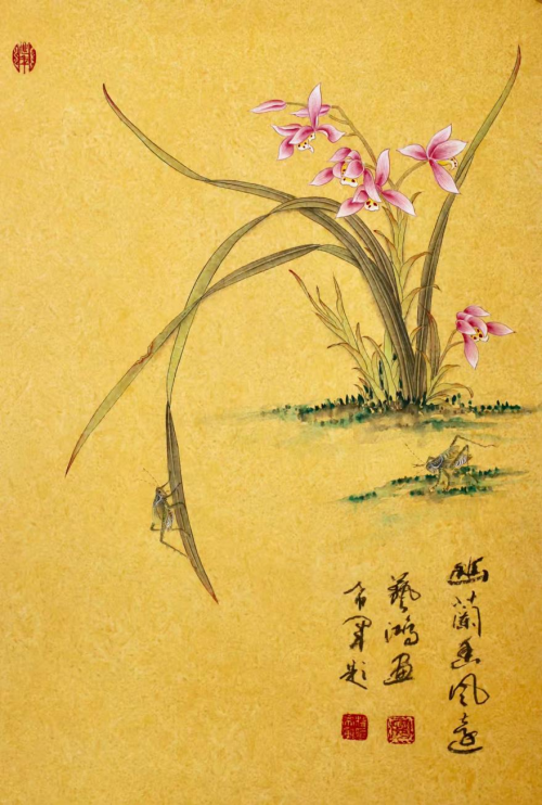 艺鸿先生的笔道,已得大师张大千用笔之能。另外,这幅作品又有能勃发画意的诗歌题句,书法也是画面多姿怡美的风格,诗、书、画风协调一致,再辅以印章点染,统篇而得综合艺术的臻美品质——兰花主题画品质,当以户广生的构画为尊。