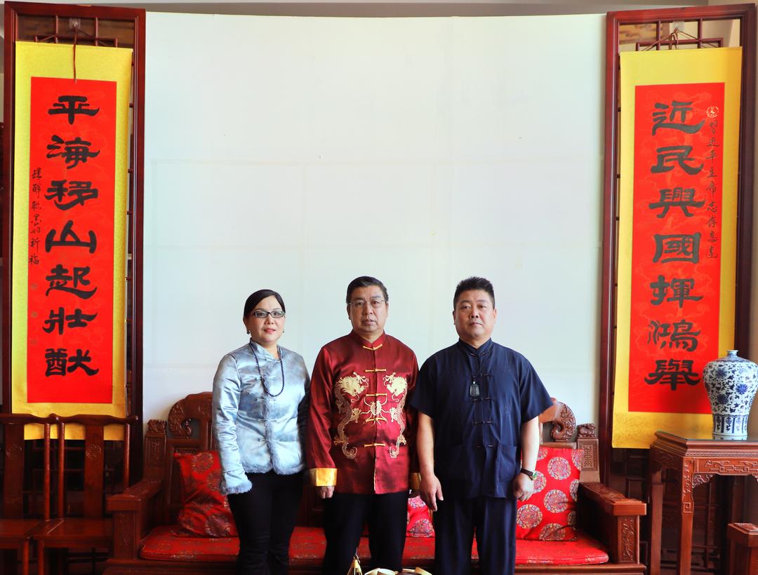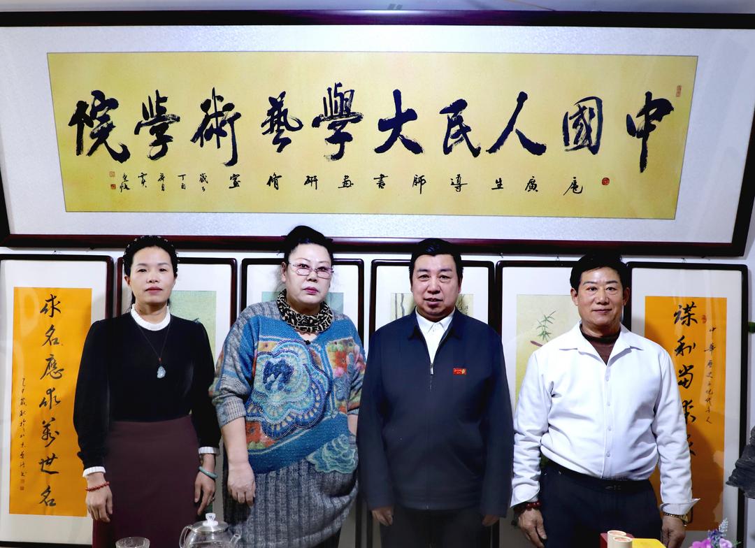会后与中企艺联书画院总经理郭海龙 ,中企艺联书画院执行院长朱静一同参观了书画院并合影留念